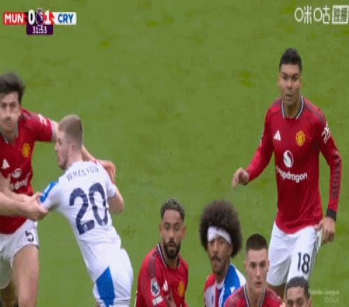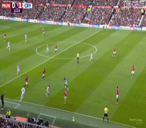第4分钟,约罗盯人不紧,拉克鲁瓦角球头球顶进死角,水晶宫1-0领先曼联
