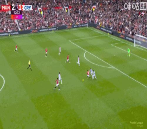 第65分钟,B费45度传中,谢什科头球破门,曼联2-1反超水晶宫