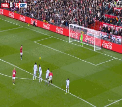 第57分钟,拉克鲁瓦拉拽库尼亚送红点,B费面对迪恩-亨德森稳稳命中,曼联1-1扳平水晶宫。