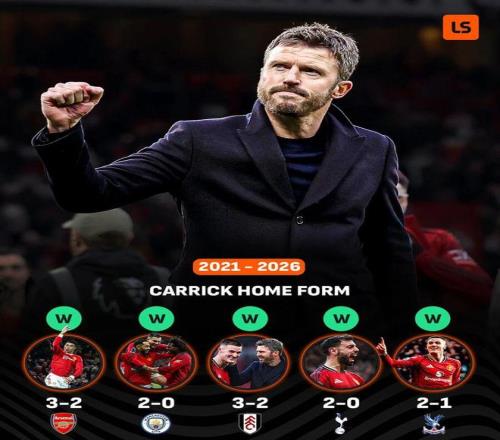 曼联在老特拉福德4分钟就落后水晶宫,但卡里克中场跑步回更衣室激励球员,下半场红魔在迫使对手犯规染红后,11分钟内连入两球实现翻盘。数据显示,2026年,曼联在所有5场处于落后状态的英超比赛中,都未尝败绩,取得2胜3平的结果。