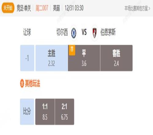 综合来看,本场比赛我倾向于伯恩茅斯最多输一球,竞彩选择让球玩法平+负,预测比分2:1或1:1。