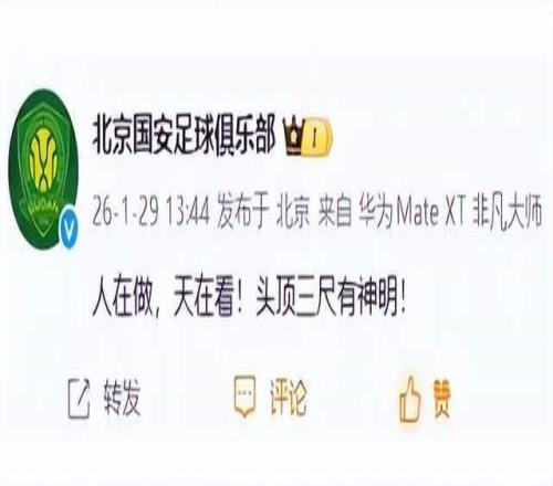 在足协公布罚单后不久,北京国安官微和公众号发文:人在做,天在看!头顶三尺有神明!很显然,面对足协的重磅罚单北京国安选择了硬钢,迅速引发了球迷的热议,能咋地,我就硬钢足协能咋地,不坚持就是怂,我不是怂人,你们这群酸黄瓜,一时间,喝点二锅头我也敬北京国安是条汉子。