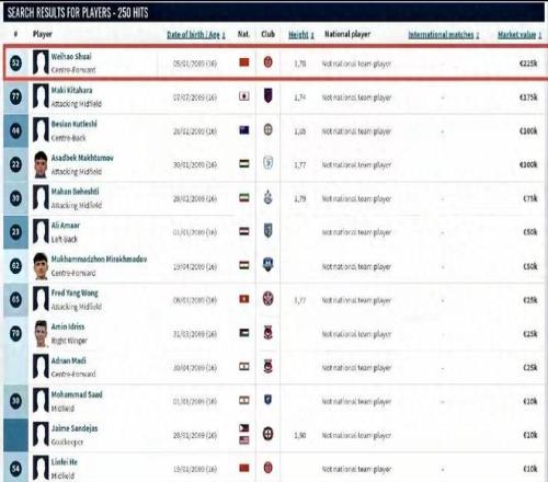 出乎意料!09小将帅维浩德转身价22万欧元,亚洲同龄段排名第一!