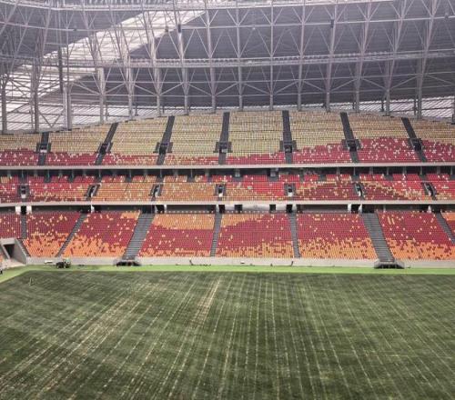随后,记者通过G1通道走进了球场,看到整个龙兴球场的看台大体呈现橙红相间的颜色,现场讲解员陈鑫告诉记者:“龙兴足球场总建筑面积16.9万平方米,最大可容纳6万多人看球,是重庆最大的专业足球场。座椅上橙红相间的颜色,寓意重庆人民热情火辣的性格,同时也代表了重庆火锅——红色代表辣椒、黄色代表牛油,白色代表水蒸气,象征着龙兴足球场的未来能够蒸蒸日上。”