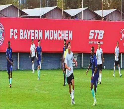 图为辽宁铁人队(白色球衣)与泰国农业大学队进行热身赛。 辽宁铁人足球俱乐部供图