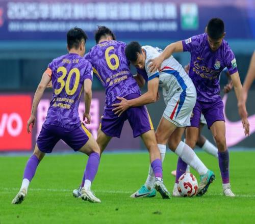 新华社照片,天津,2025年11月22日 11月22日,上海申花队球员高天意(右二)受到天津津门虎队多名球员防守。 当日,在天津举行的2025赛季中国足球超级联赛第30轮比赛中,上海申花队客场3比1战胜天津津门虎队。 新华社记者 孙凡越 摄