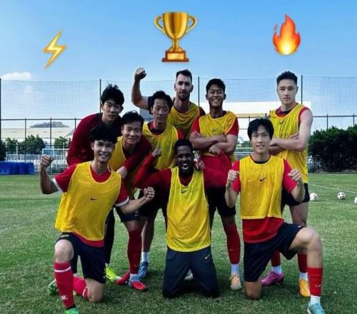 长春亚泰中场木扎帕尔晒出在训练场上与队友们的合影,原陕西联合外援赖纳出镜。