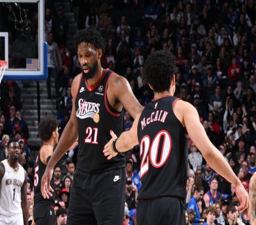 乔治禁赛!恩比德40+11率76人力克鹈鹕贝34分锡安6中2