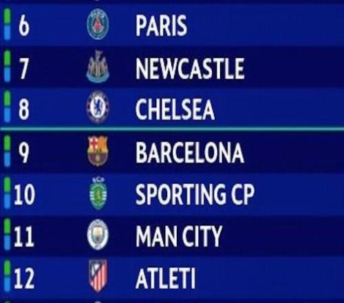 欧冠联赛阶段最后一轮18场同开,赛前6-13名的八支球队同积13分,对前八的直通名额展开了激烈争夺。不过半场过后...