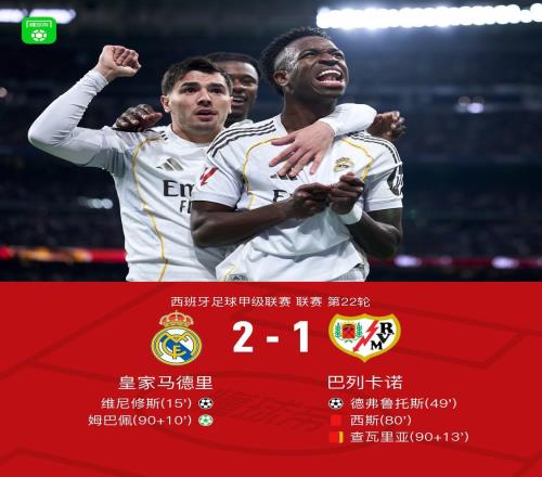 2025-26赛季西甲联赛第22轮继续进行,皇家马德里坐镇伯纳乌球场迎战巴列卡诺。全场比赛战罢,皇马凭借维尼修斯...