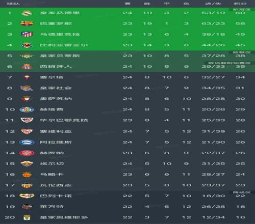 随着皇马41,黄潜12,西甲第24轮最新排名出炉!皇马超巴萨2分