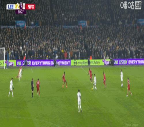 第30分钟,贾斯廷助攻,奥卡福尔推射破门,利兹联2-0诺丁汉森林