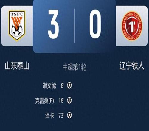 泰山队以30战胜铁人队谢文能和克雷桑进球铁人队首场中超失利射正机会仅有一次_中超直播