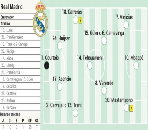 阿斯报预测皇马对皇家社会的首发阵容维尼修斯回归首发中卫为阿森西奥和赫伊森_西甲直播