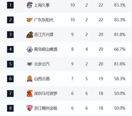 CBA最新积分榜出炉!广东逆袭冲上前三,北京跌至第4,辽篮升第7