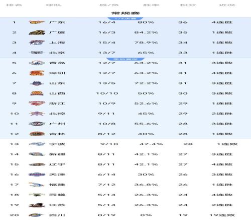 CBA最新排名!差距仅1场,3队抢第1山东冲前4,辽宁跌出季后赛
