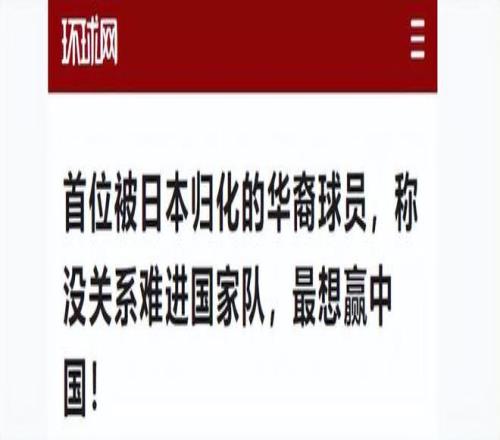 环球网:首位被日本归化的华裔球员,称没关系难进国家队,最想赢中国!