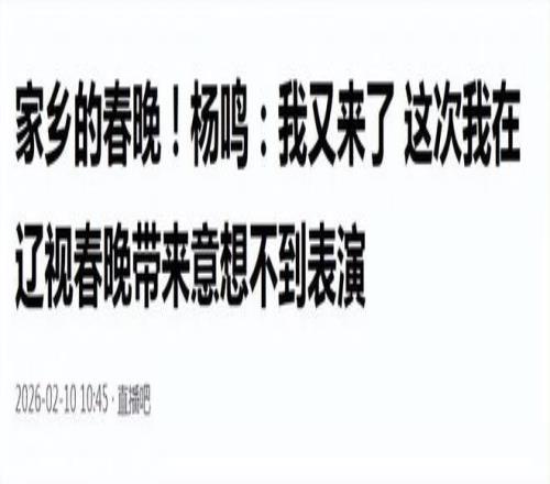 信息来源:直播吧:2026-02-10:家乡的春晚!杨鸣:我又来了 这次我在辽视春晚带来意想不到表演