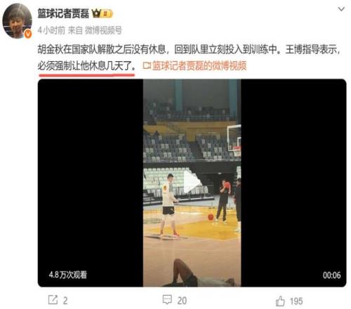 模范!胡金秋回到浙江广厦后立马加练罚球,王博强制他放假休息