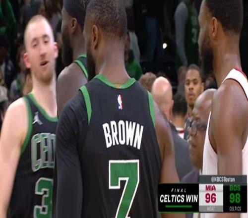 凯尔特人最多落后22分,最终以98-96大逆转热火,一波5连胜,直接反超尼克斯升上东部第2.