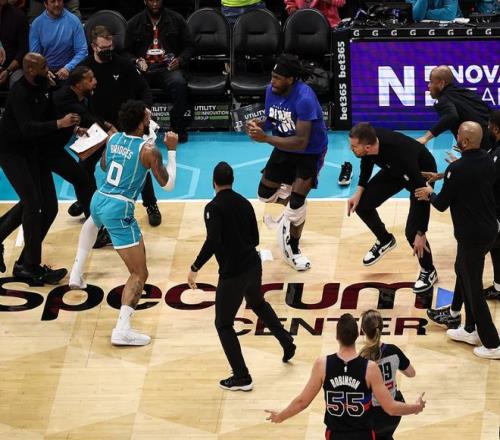 活塞队前往客场挑战黄蜂队,后者正处于9连胜之中,这也是联盟现存最长连胜纪录。可结果呢?活塞队反客为主压着黄蜂打,杜伦打爆迪亚巴特,二人爆发大冲突引起混战,杜伦、迪亚巴特、布里奇斯和斯图尔特4人被驱逐。即便如此活塞队还是牢牢掌控着比赛走势,一鼓作气建立起16分的领先优势,稳扎稳打从客场带走胜利,4分险胜对手,成功终结了对手的9连胜。