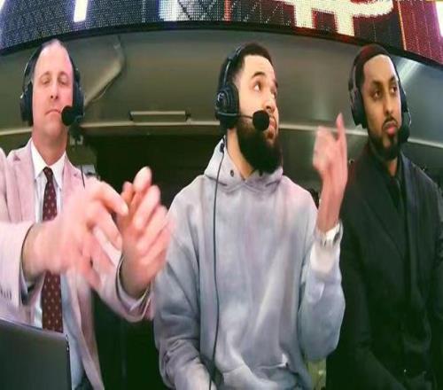 范弗利特现身火箭演播室,搭档解说比赛。