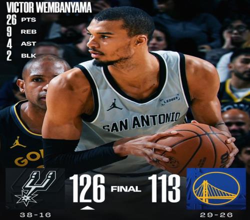 马刺战胜勇士,文班成功超越追梦_NBA直播