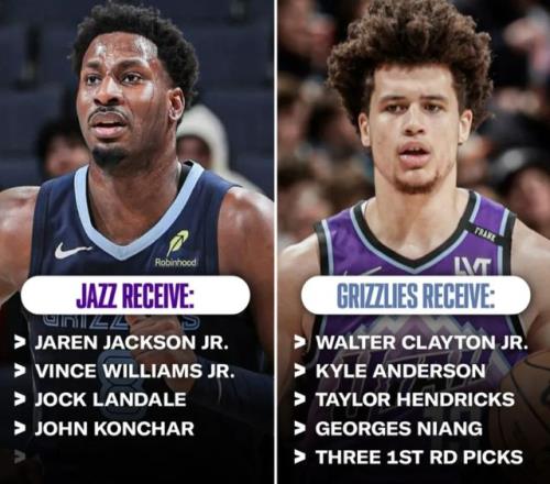 打包小克莱顿、李凯尔、亨德里克斯、乔治·尼昂,附加3个首轮送走,而换回来的核心只有一人,灰熊明星内线小贾伦·杰克逊。