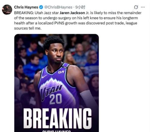 而更离谱的还在后续,此前爵士官方突然宣布,小贾伦接受手术,本赛季报销;甚至还额外补充了一句,早在交易体检时,爵士就知道他有伤在身了。