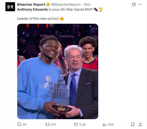 根据数据媒体StatMuse的报道,爱德华兹拿到2026年AMVP是森林狼队史2003年的凯文-加内特后首人。