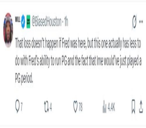 休媒:如果有范弗利特的话这场被逆转不会发生。但这场比赛的失利其实跟范弗利特的组织进攻能力没有太大关系。(暗示还是乌度卡的问题)