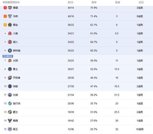 超越雷霆登上联盟第1位的,则是活塞队!活塞队打到现在,战绩位42胜13负,胜率76.4%,超越了雷霆,成为新的联盟第1,他们也是本赛季进步最大的球队之一!