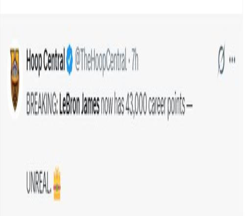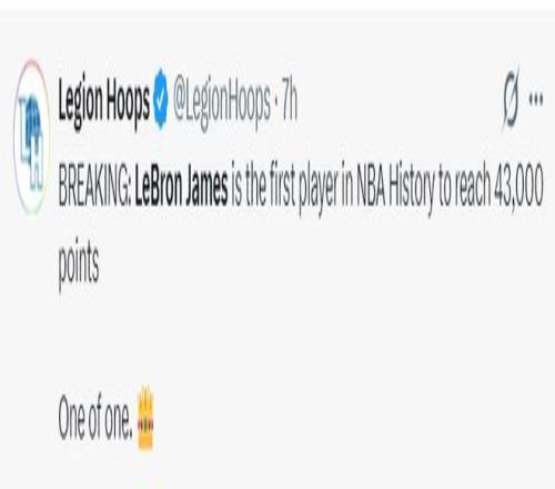 在勒布朗-詹姆斯完成这43000分里程碑后诸多美媒纷纷为41岁的勒布朗戴上皇冠,因为这是NBA历史上唯一的存在。就连NBA官方都为勒布朗戴皇冠。