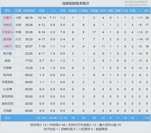 全场结束,马刺114-103击败活塞。马刺豪取9连胜,终结了活塞5连胜。文班亚马16中6,砍下21分17篮板4助攻1抢断6盖帽,正负值+14,第四节单节轰下11分4盖帽!坎宁安26投5中仅得16分6板10助2断3帽3失误,正负值-18。