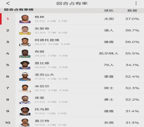 格林场均得分、篮板、助攻和三项命中率,都是个人生涯新低。他本赛季真实命中率只有46.1%,全联盟倒数第9。格林身后的8名球员,场均得分最高的也不超过6分,简单来说就是角色球员。而格林回合占有率37%,比东契奇还高。
