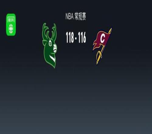 第四节雄鹿西姆斯拿下7分,骑士艾伦拿下7分,最终雄鹿118-116战胜骑士