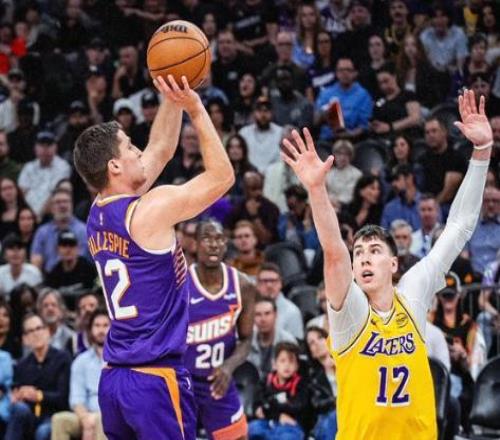 NBA常规赛,太阳坐镇主场迎击湖人队。本场比赛之前,湖人34胜23负排名西部第6,近段时间湖人状态不算稳定,遭遇2连败,对阵季后赛级别的对手,球风强硬的对手,确实要差点意思,虽然湖人全员健康,东契奇,詹姆斯,里夫斯三巨头联手,又在交易截止日前引进肯纳德,迎来了本赛季联盟第一准的三分射手,但湖人阵容还是存在短板,替补得分能力不足,再加上核心防守水平有限,可能会阻碍他们在季后赛进一步突破上限。另一边的太阳队,本场比赛之前,33胜26负排名西部第7,尽管去年失去了杜兰特和比尔,但太阳今年仍然有冲击季后赛的机会。