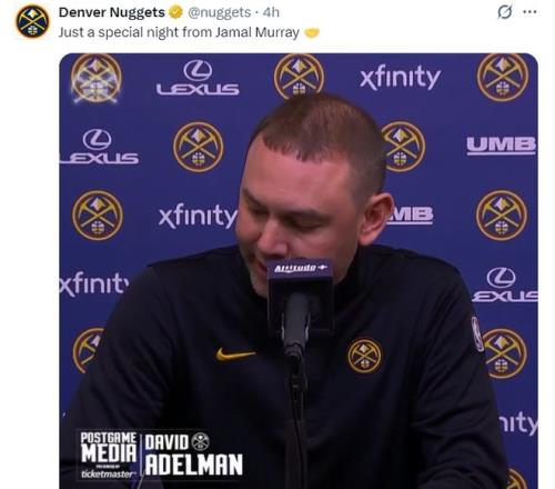 赛后阿德尔曼谈到穆雷:他扛着球队前行,他看上去是球队最具活力的球员,在约基奇遭遇重兵看护的情况下他挺身而出,这是属于穆雷的夜晚,我很喜欢这样的时刻,因为我们都希望他打出这样的表现,我们也知道他可以接管比赛,三分球、罚球线、投篮效率都可以很惊人。