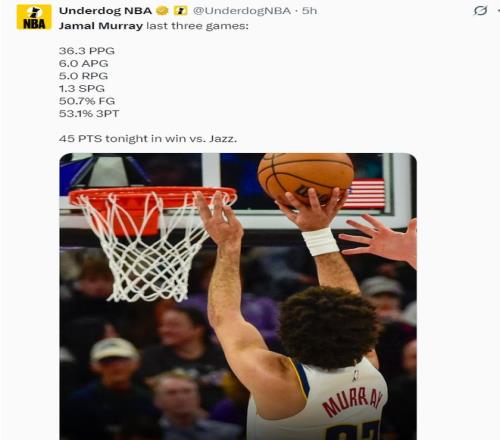 穆雷狂轰45分连刷四纪录!近三战109分势头猛烈阿帅:他扛起球队