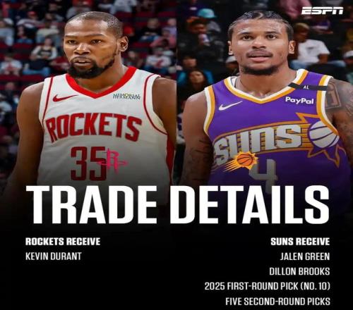 通过交易太阳队仅得到火箭培养数年成长不佳的杰伦格林、火箭溢价合同签下的狄龙、25年10号签,外加5个次轮签(25年火箭59号签、26年火箭的两个次轮签、30年凯尔特人的次轮签和32年火箭次轮签)。