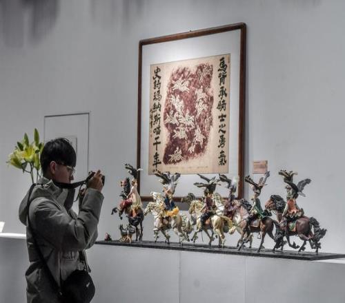 2026年2月1日,新疆乌鲁木齐市,“飒沓流星 春风得意——第十三届天山南北贺新春非物质文化遗产年俗展”主会场活动暨2026年新疆传统工艺展示活动在新疆美术馆开幕。图为各类以“马”为核心元素的工艺展品吸引参观者。 中新社记者 刘新 摄