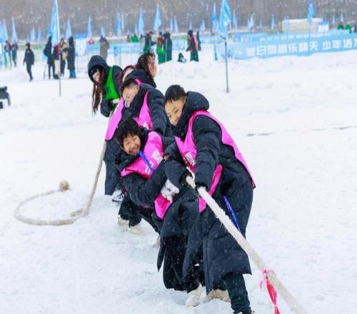 2026年1月29日,新疆乌鲁木齐,小朋友在市民广场冰雪嘉年华内参加拔河比赛。视觉中国 图