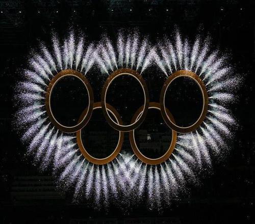 奥林匹克五环闪耀冬奥会开幕式