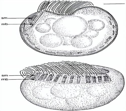 图中展示了微生物促动卵杆菌的横切面(上图)和侧视图(下图)。可见其长有一束由约400根鞭毛组成的“尾巴”,它正是借此来实现高速游动。(此外,它还拥有一些用途尚不明确的独特膜结构,包括堆叠膜(sm)和膜带(mb)。)图片来源:T. FENCHEL & R. THAR / FEMS MICROBIOLOGY ECOLOGY 2004