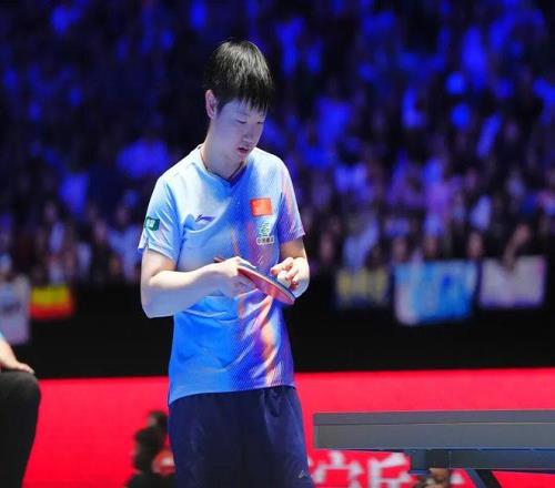 决赛第一局比赛,孙颖莎在1-1后连得5分,随后又连续得分以11-2战胜王曼昱,大比分1-0领先。