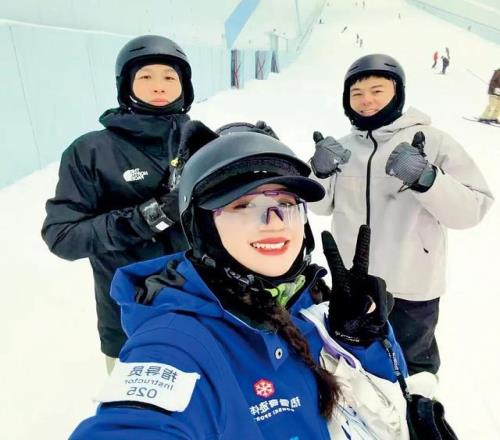 那时的她不会想到,雪场会主动南下,来到她的“家门口”。2025年,她成为深圳最大室内雪场的一名单板滑雪教练,已经有数百名来自广东、港澳台地区乃至海外的学员,在她的指导下第一次学会推坡、转弯。