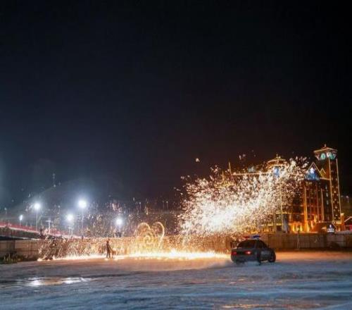 冰雪漂移与非遗打铁花。 陈炳衡/摄