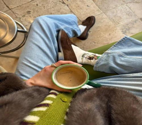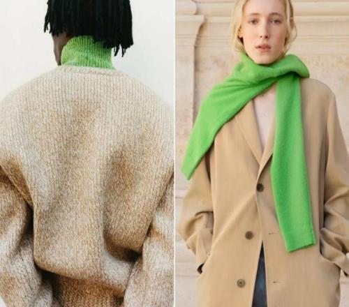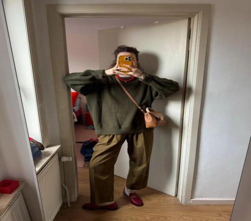 很多人家里大概率都有一件棕色外套,只要搭配一件绿色内搭,就能轻松穿出春日感。