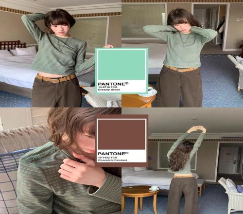 想尝试这个比例的朋友,建议选绿色上衣+棕色下装的组合,对亚洲人肤色更友好。