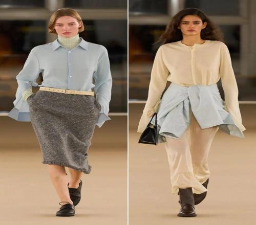 像很会玩配色的Auralee,就把黄蓝配带到了2026秋冬大秀上,主打一个“轻盈的冬天”。▼